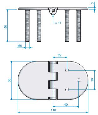 Roca, Schwerlastscharnier RF mit festen M6 Schrauben, AISI 316, 60x110mm