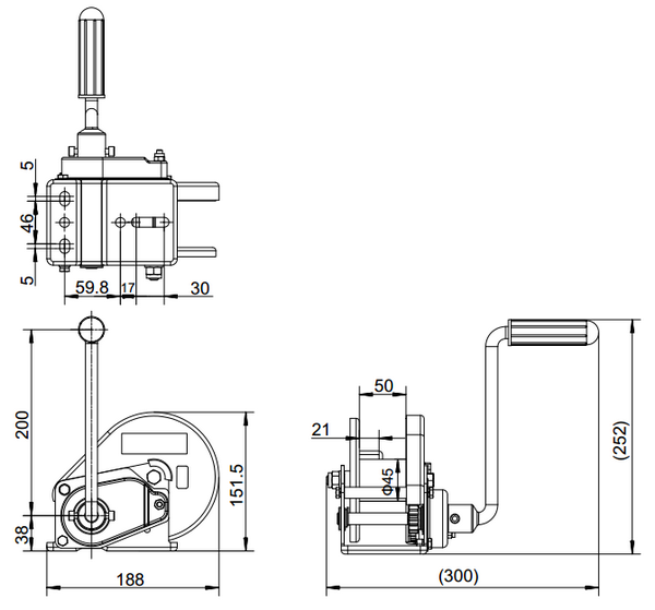 Rock, Anhängerwinde RBW1500 mit automatischer Bremse, 681 kg, 5,1:1, 15,0 m Seil Ø 5,0 mm