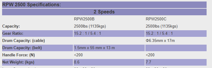 Rock, Anhängerwinde RPW2500C, 2 Geschwindigkeiten, 1135 kg, Draht Ø 6,0 mm, 17,0 m