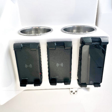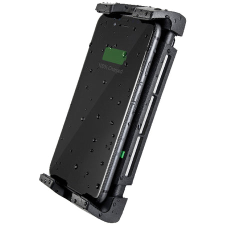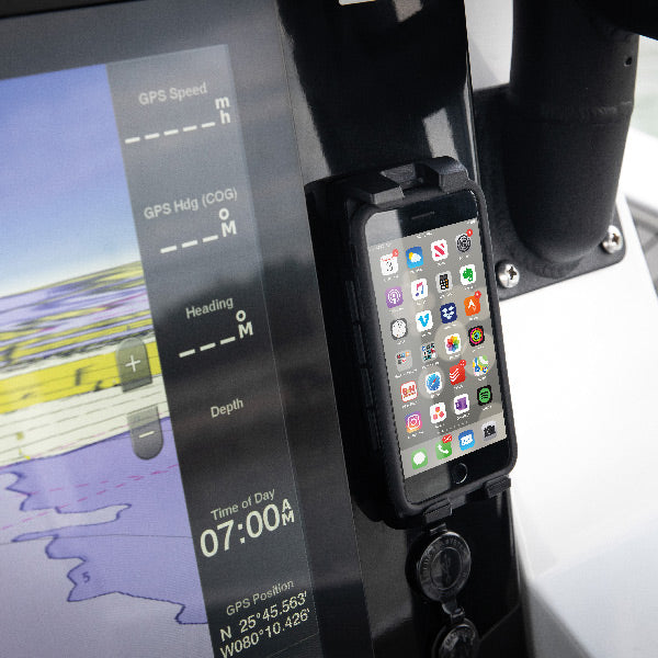 Die ROKK Aktiv Telefonhalterung mit kabellosem Ladegerät bietet Ihnen eine innovative Lösung, um Ihr Smartphone jederzeit griffbereit und vollständig aufgeladen zu haben, selbst während Sie auf dem Wasser sind. Diese Halterung ist für die anspruchsvollsten Bedingungen im Freien konzipiert und eignet sich ideal für Bootskonsolen und Cockpits.