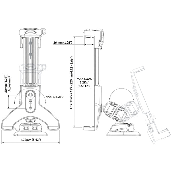 Die verstellbare Tablet-Klemme sorgt dafür, dass sowohl Mini- als auch Full-Size-Tablets sicher montiert werden können. Das ROKK Montagesystem ist ideal für den Einsatz auf Booten, wo Platz und Stabilität entscheidend sind.