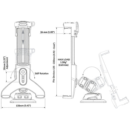 ROKK, iPad/Tablet-Halterung, selbstklebend, 125 mm - 220 mm, max. Gewicht 1,2 kg