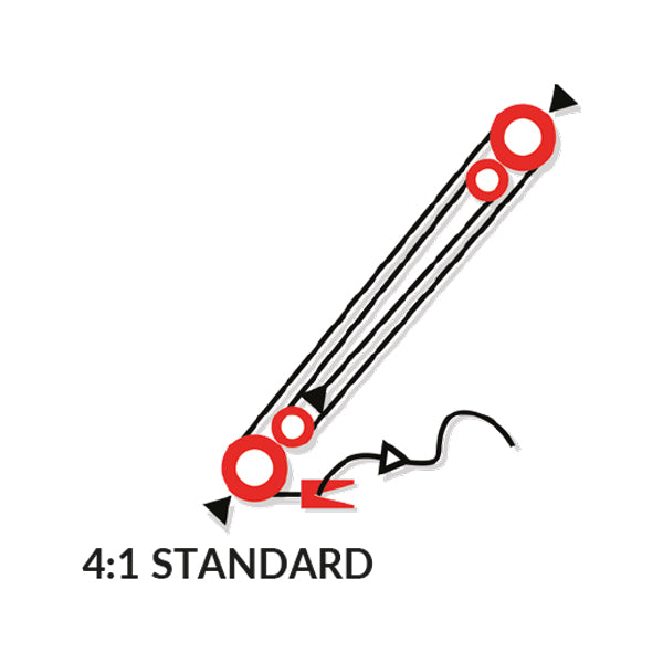 Rutgerson, Spleißsystem 4:1 mit 60 mm Blöcken und Ø 10 mm Seil, 25 m, 60 mm