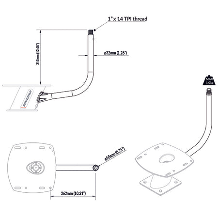 ScanStrut, PowerTower GPS & VHF Halterung, 1" x 14 TPI, 317 mm