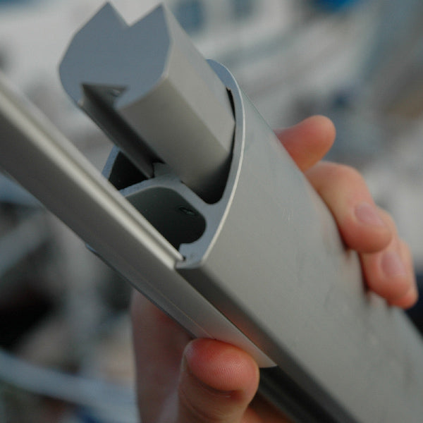 - Justierung: Klemmen um das Backstag für verstellbare Spannung