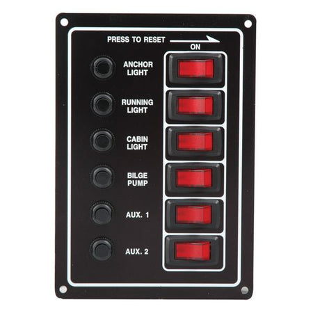 Schalttafel 6 Kontakte mit Thermosicherungen 12V, 115 mm x 165 mm