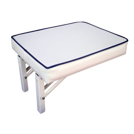 Dieser Klappsitz ist mit zwei weißen pulverbeschichteten Klappbeschlägen ausgestattet, die Stabilität und Langlebigkeit gewährleisten. Die kompakten Maße machen ihn leicht zu verstauen, wenn er nicht in Gebrauch ist, was ihn zu einer praktischen Wahl für Zuhause und Boote macht.