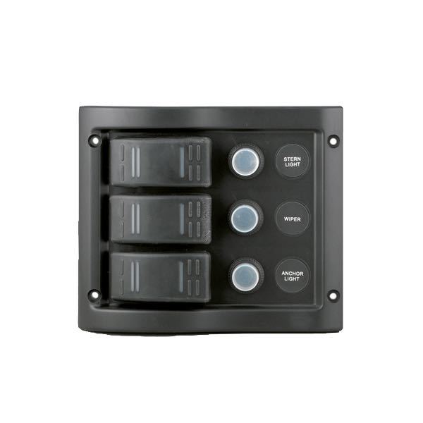 Spritzwassergeschützte Schalttafel mit Schutzschalter und 3 Schaltern, 12V, IP65, 130mm x 100mm, 1 x 5 Amp, 2 x 10 Amp