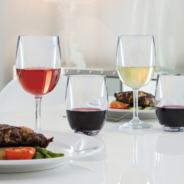 Die Strahl Weingläser sind aus Polycarbonat gefertigt, einem Material, das die gleiche Klarheit und Eleganz wie traditionelles Glas bietet, jedoch den zusätzlichen Vorteil der Bruchsicherheit hat. Sie sind zudem leicht zu reinigen und spülmaschinenfest, was sie zu einer praktischen Wahl für jeden Haushalt macht.