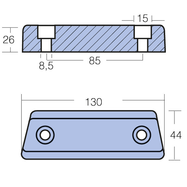 Tecnoseal, Aq-drive Anode, 290 Duo Prop, Zink, 0,76 kg, 46 mm x 25 mm x 132 mm, 86 mm Lochabstand