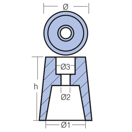 Tecnoseal, Zink für 1141488, 45mm (h: 76 mm, Ø1: 48 mm, Ø2: 11 mm, Ø3: 24 mm)