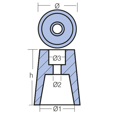 Tecnoseal, Zink für 1141490, 50 mm, 84 mm x Ø1: 57 mm, Ø2: 11 mm, Ø3: 27 mm