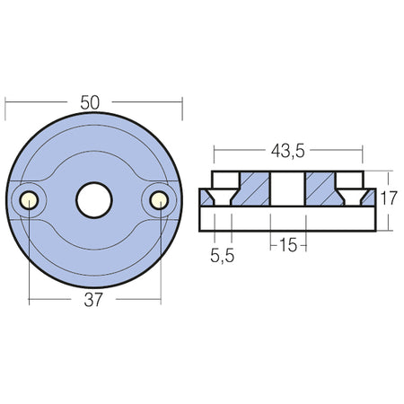 Tecnoseal, Zinkanode für Vetus Bugstrahlruder KGF 35, Ø 50 mm, BP-1126/SET0149