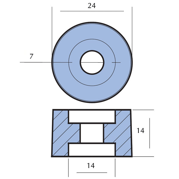 Tecnoseal, Zinkanode Honda 20-225 PS, Ø 24 mm, Bohrung Ø 6,5 mm, Höhe 14 mm, Original Nr. 12155-ZV5-000
