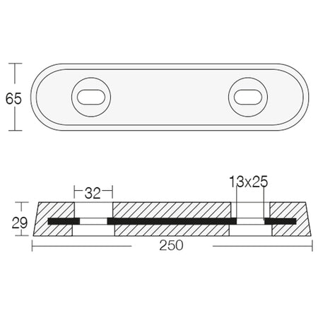 Tecnoseal, Zinkanode Vetus, 29x63x250 mm, 140 mm Lochabstand