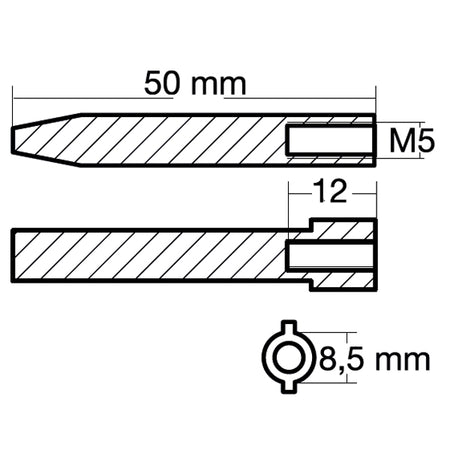 Tecnoseal, Zinkanode Yamaha Motor Zink 25-250HP, 62Y-11325-00, M5, Ø 8,5 mm, 0,02 kg