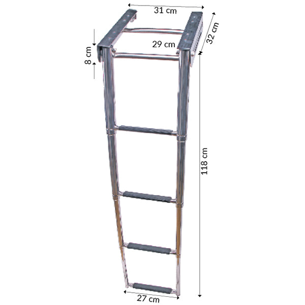 Die Leiter verfügt über vier rutschfeste Stufen und eine Breite von 310 mm, die Sicherheit und Komfort gewährleistet. Egal, ob Sie ein- und aussteigen oder einfach nur eine praktische Ergänzung für Ihr Boot hinzufügen möchten, diese Teleskopleiter ist die ideale Wahl.
