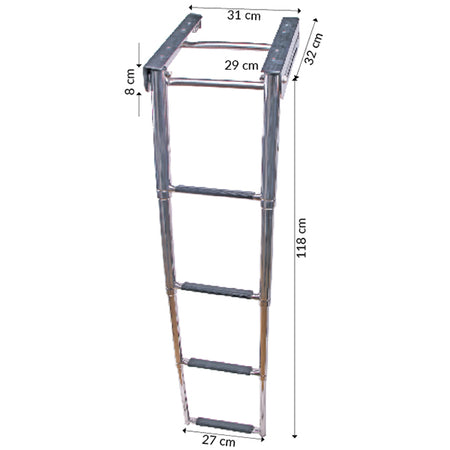 Teleskopleiter 4 Sprossen, Edelstahl AISI 316, 310 mm Breite