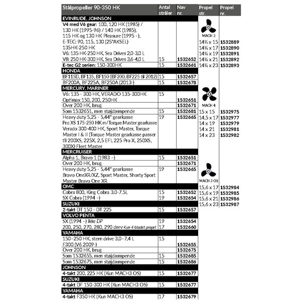 - MERCURY, MARINER: V6 (135-300 PS), Optimax (150-250 PS), Verado (300-400 PS)