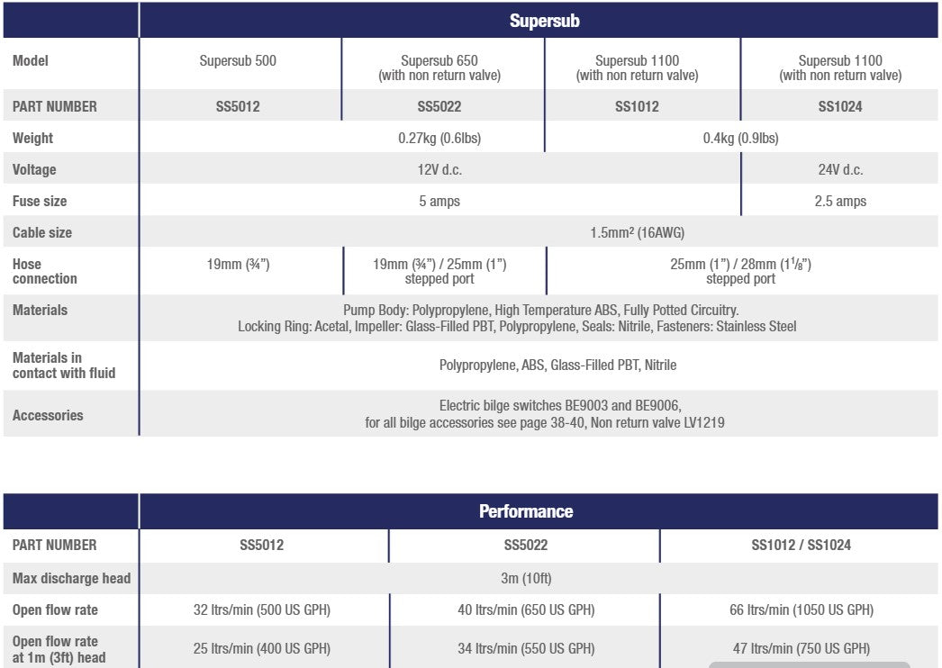 Whale SuperSub 500 er en elektrisk lænsepumpe med en imponerende kapacitet på 32 liter pr. minut. Med sin kompakte størrelse på kun 183 mm i længden og en vægt på 0,27 kg er denne 12V pumpe ideel til effektiv lænsning i både og mindre fartøjer, hvor pladsen er begrænset.